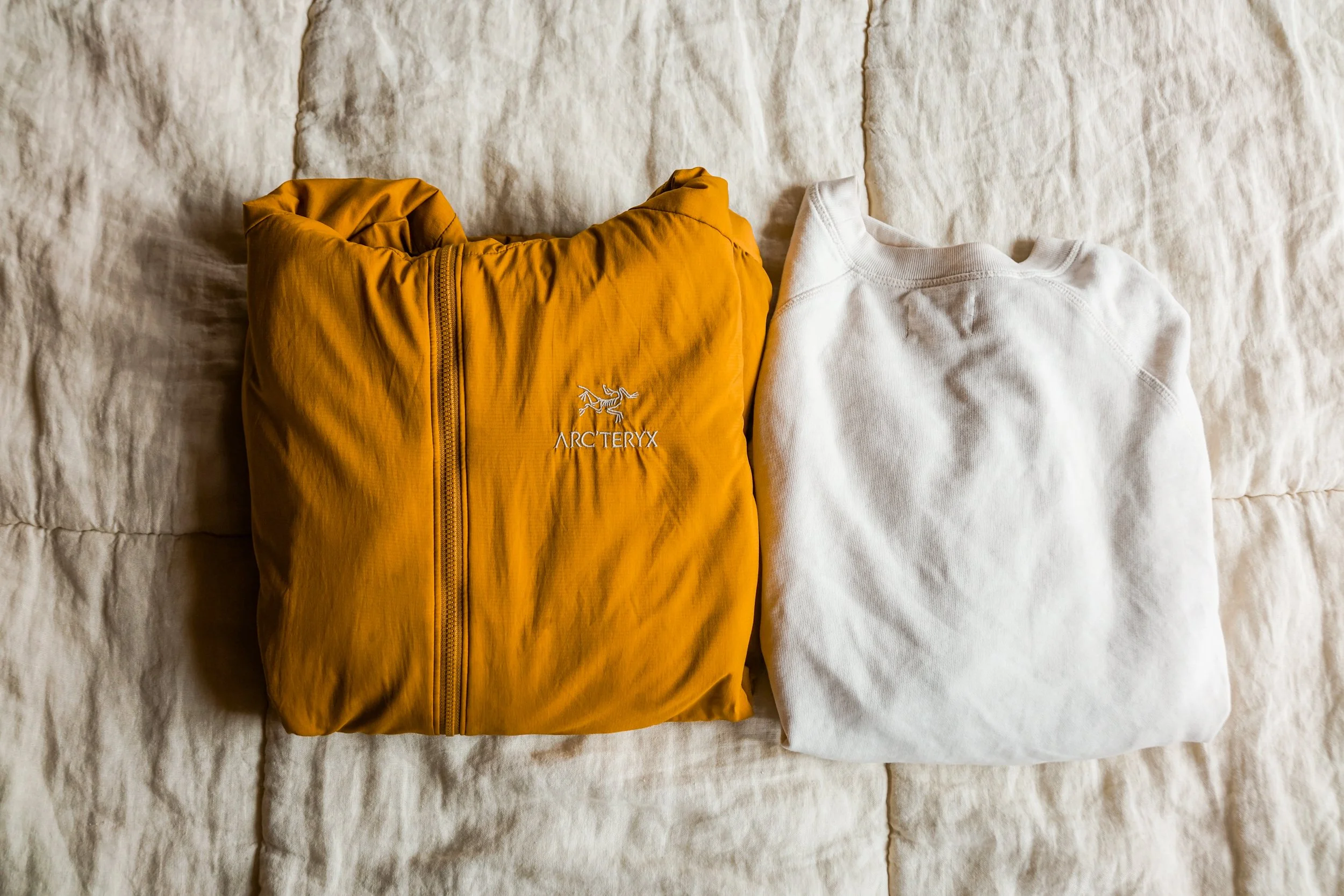 Jacket: If it’s going to be a bit cooler (especially at night) or I’m spending most of my time in cities, the ADAY Up In The Air Jacket is my go-to. It’s stylish but also incredibly functional, surprisingly warm, blocks wind very nicely, and is odor- and wrinkle-resistant. For more outdoorsy adventures, like a national park road trip, I’ll go for my Arc’teryx Hoodie for a warm layer or my Topo Rain Jacket if I’m prepping for wet conditions.